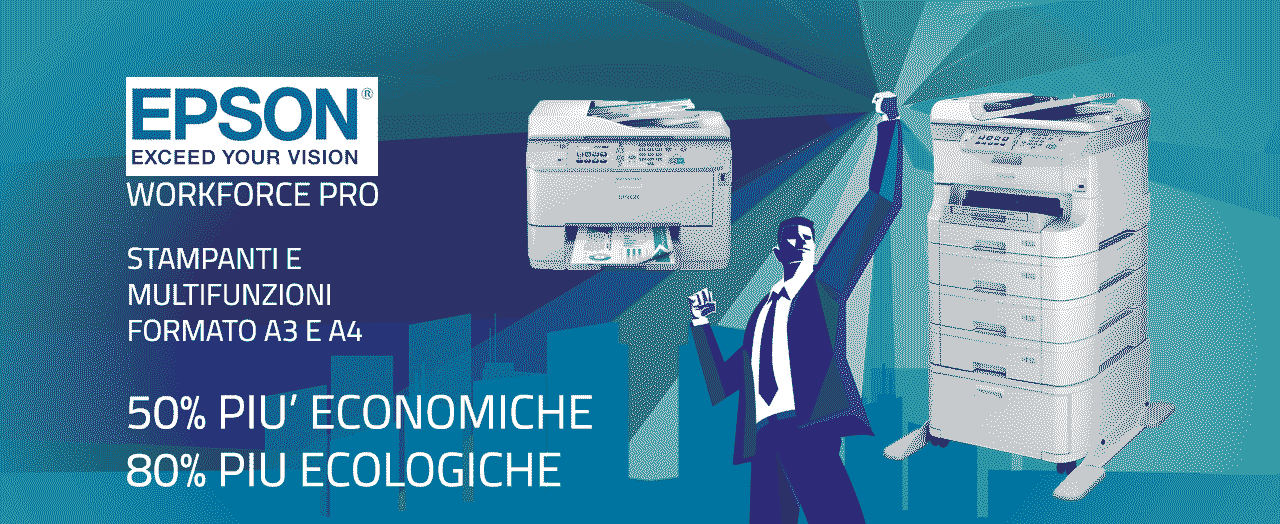 La famiglia di Workforce Pro di Epson comprende stampanti e multifunzioni A3 e A4 studiate per l'esigenza dell'ufficio moderno, con costi copia bassissimi ed economicità di utilizzo ai massimi livelli, consumi energetici ed emissioni di anidride carbonica da record.